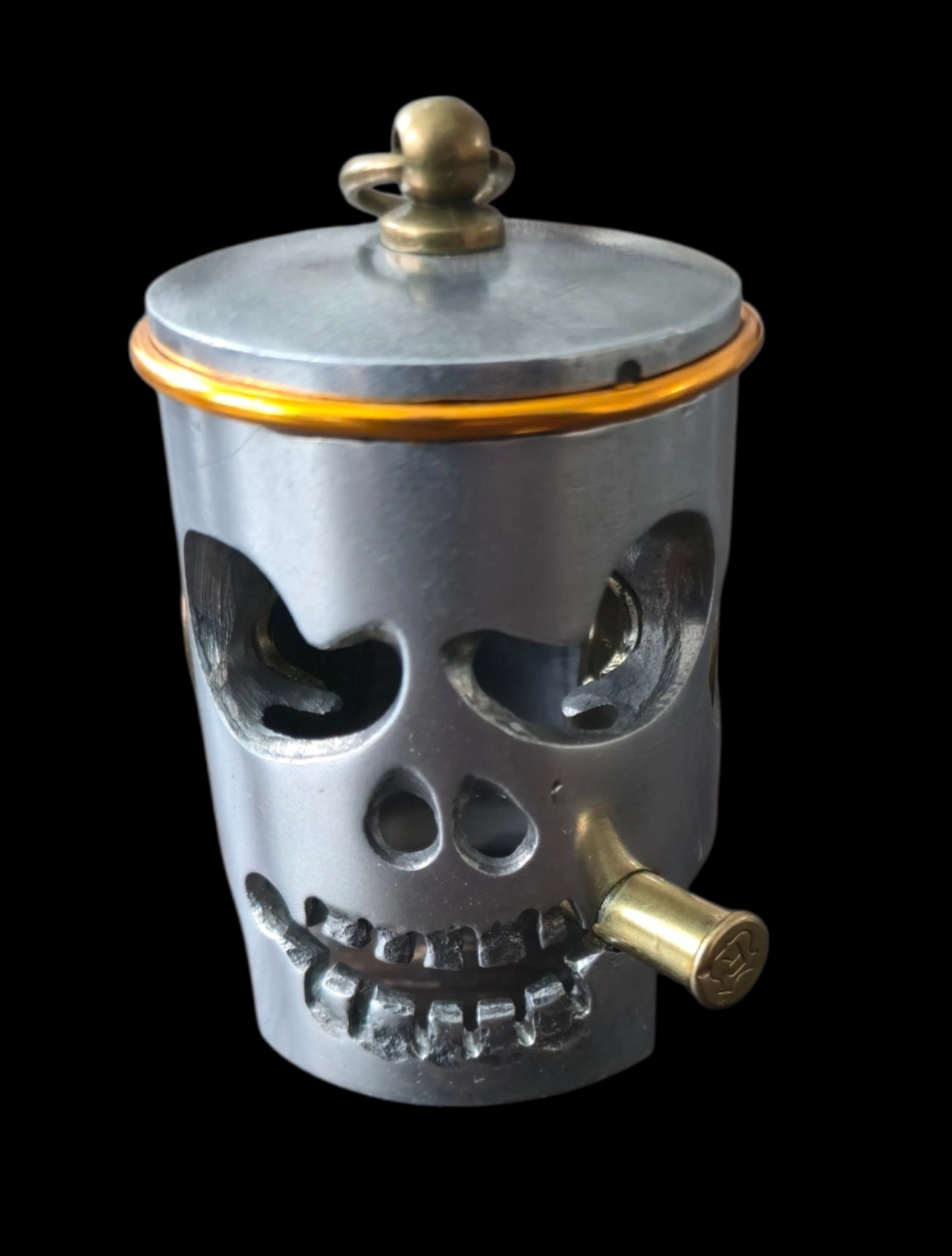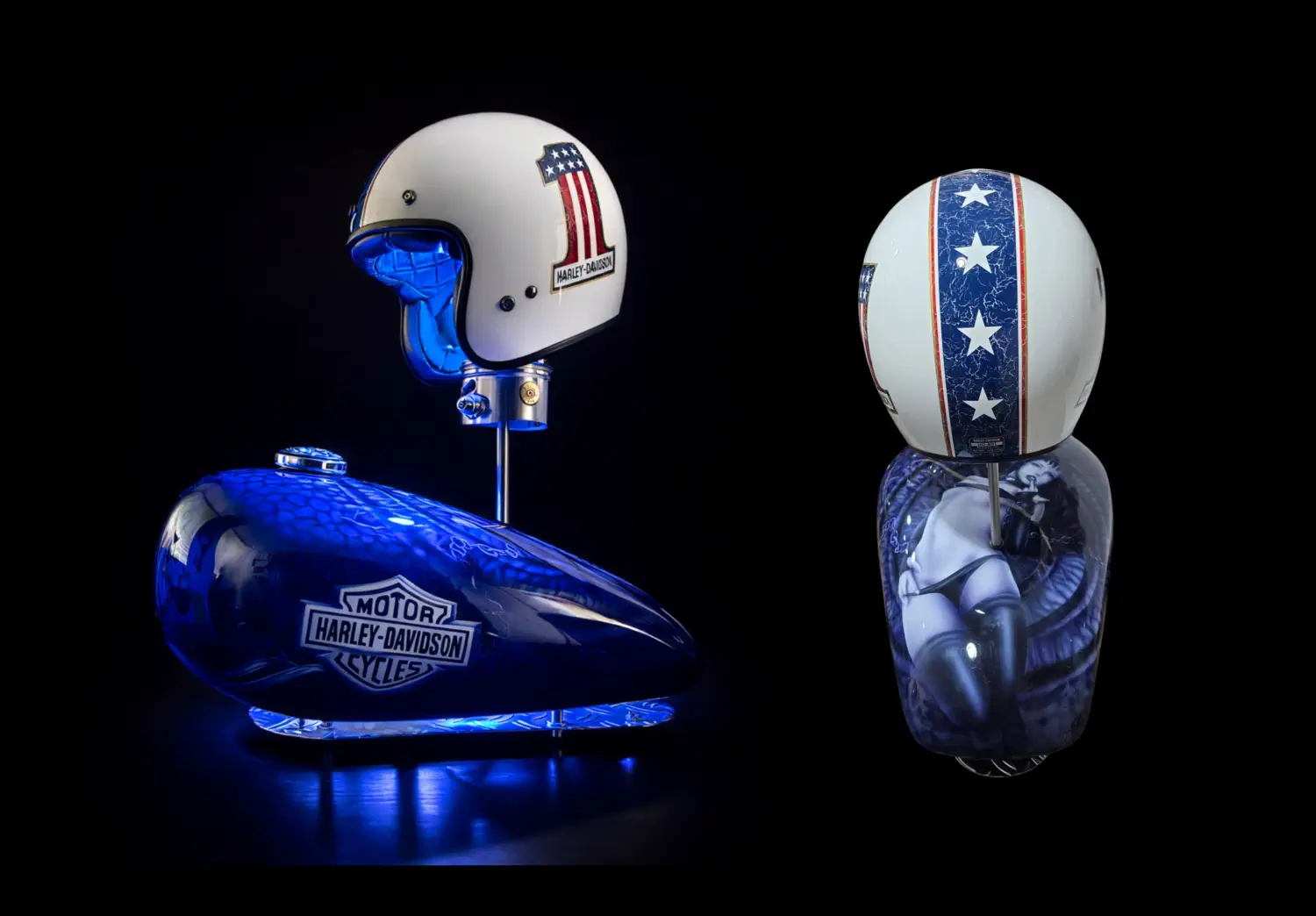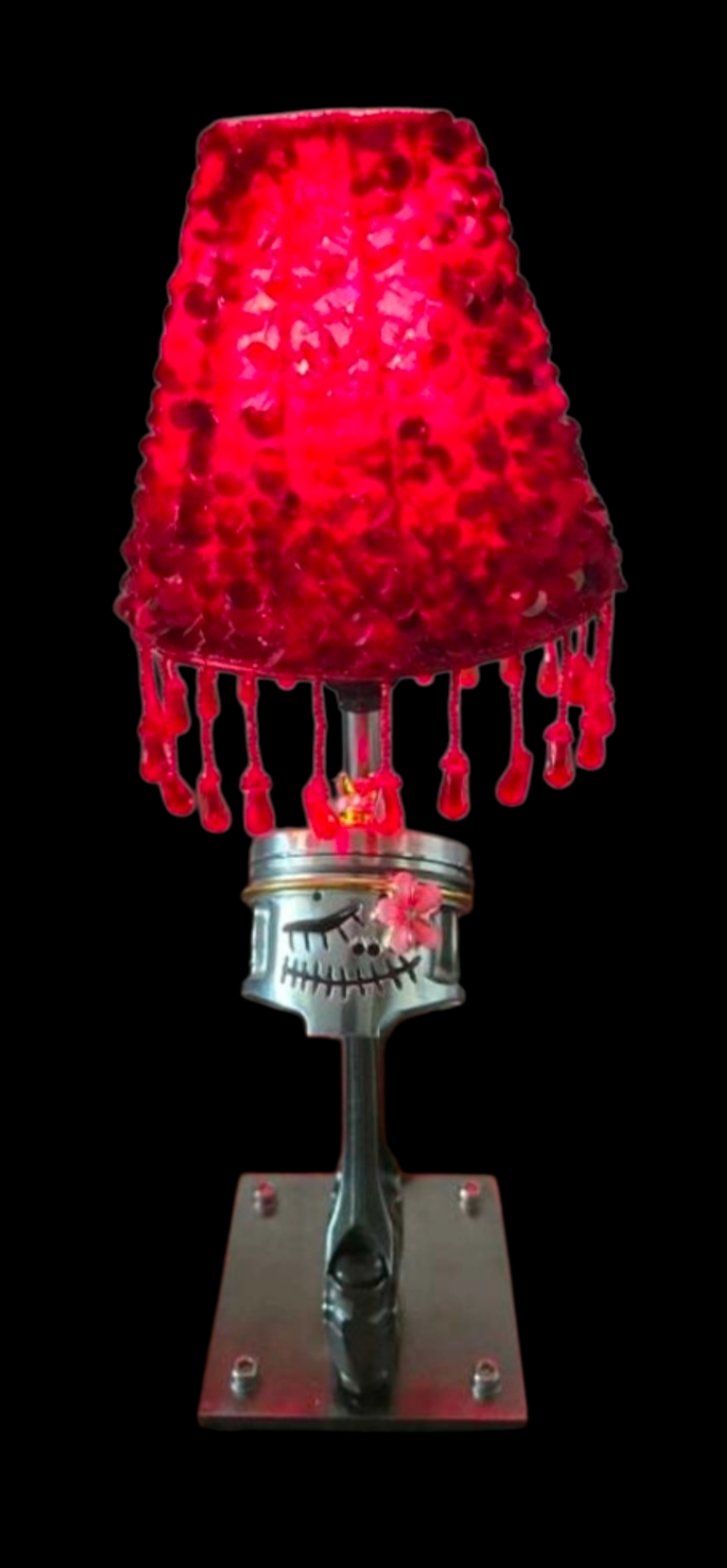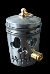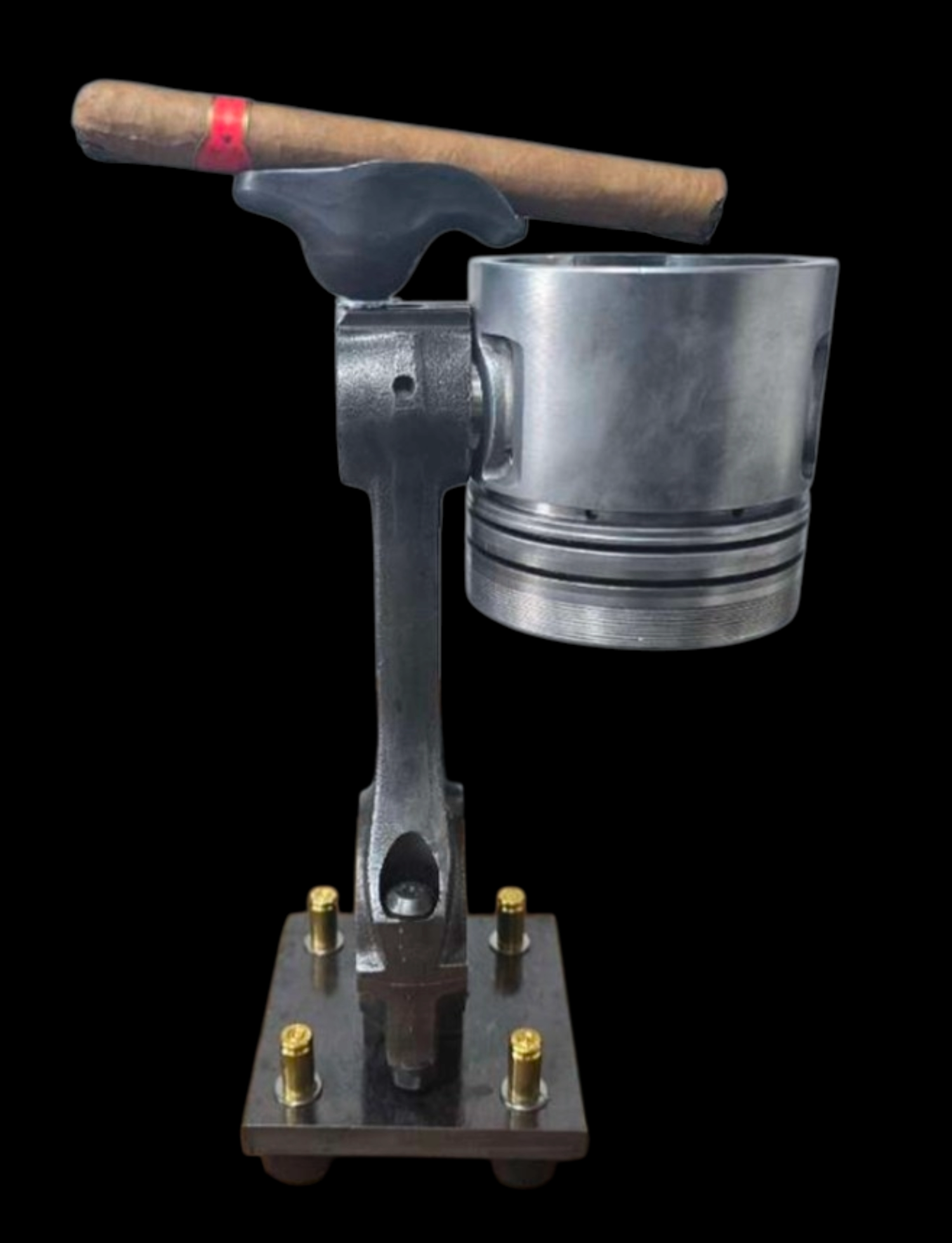 passend dazu ein 1340er Harley Shovelhead Kolben aus den 70er Jahren unter dem Helm,